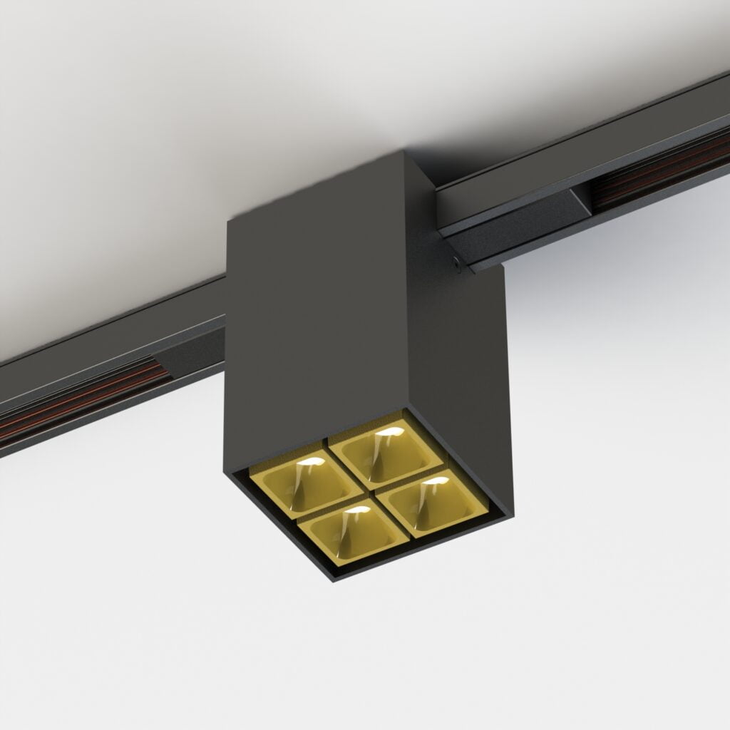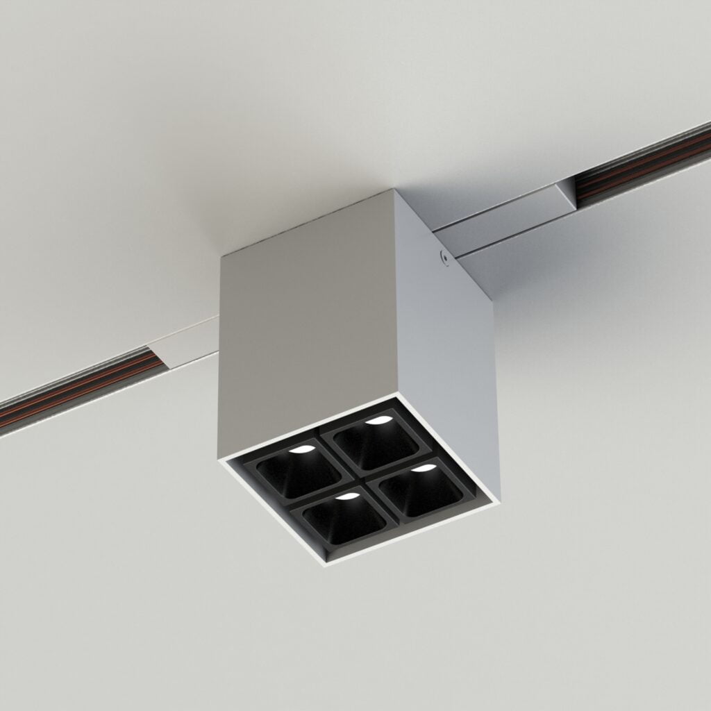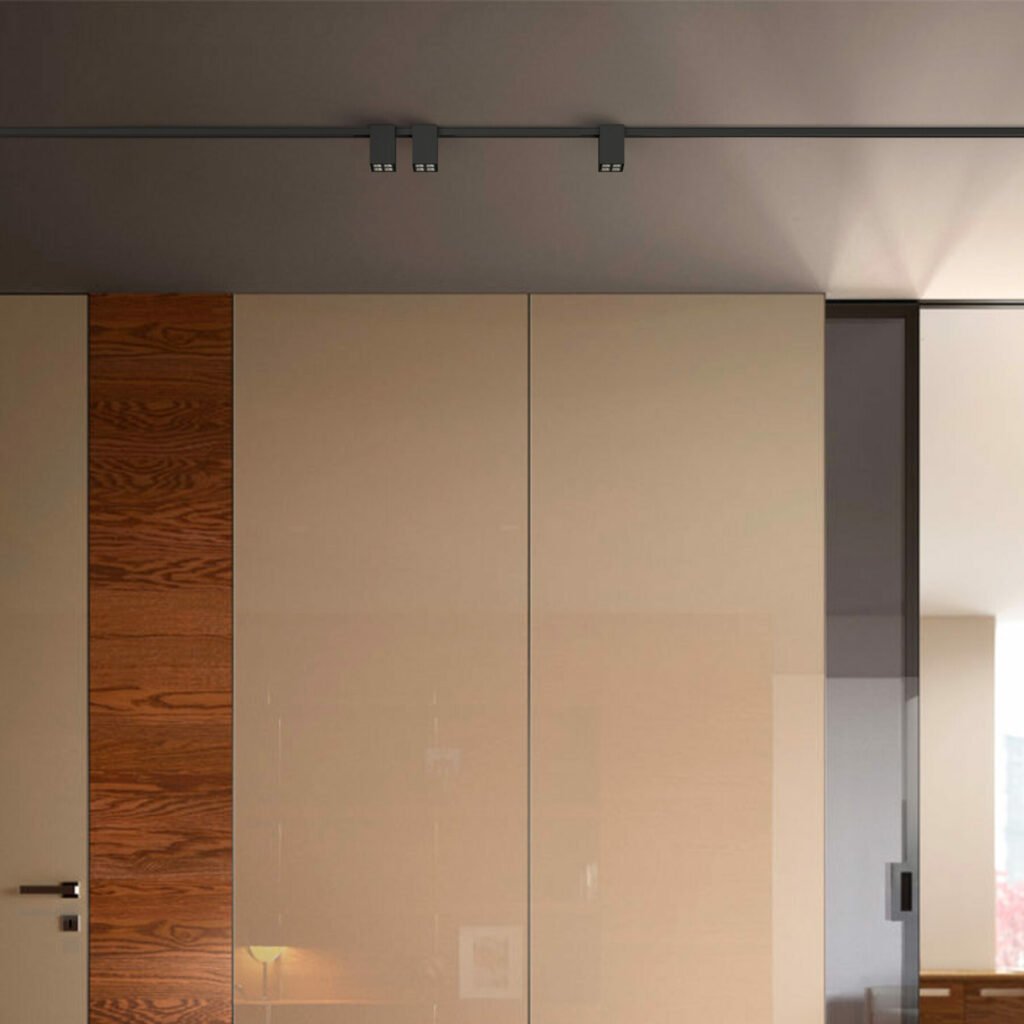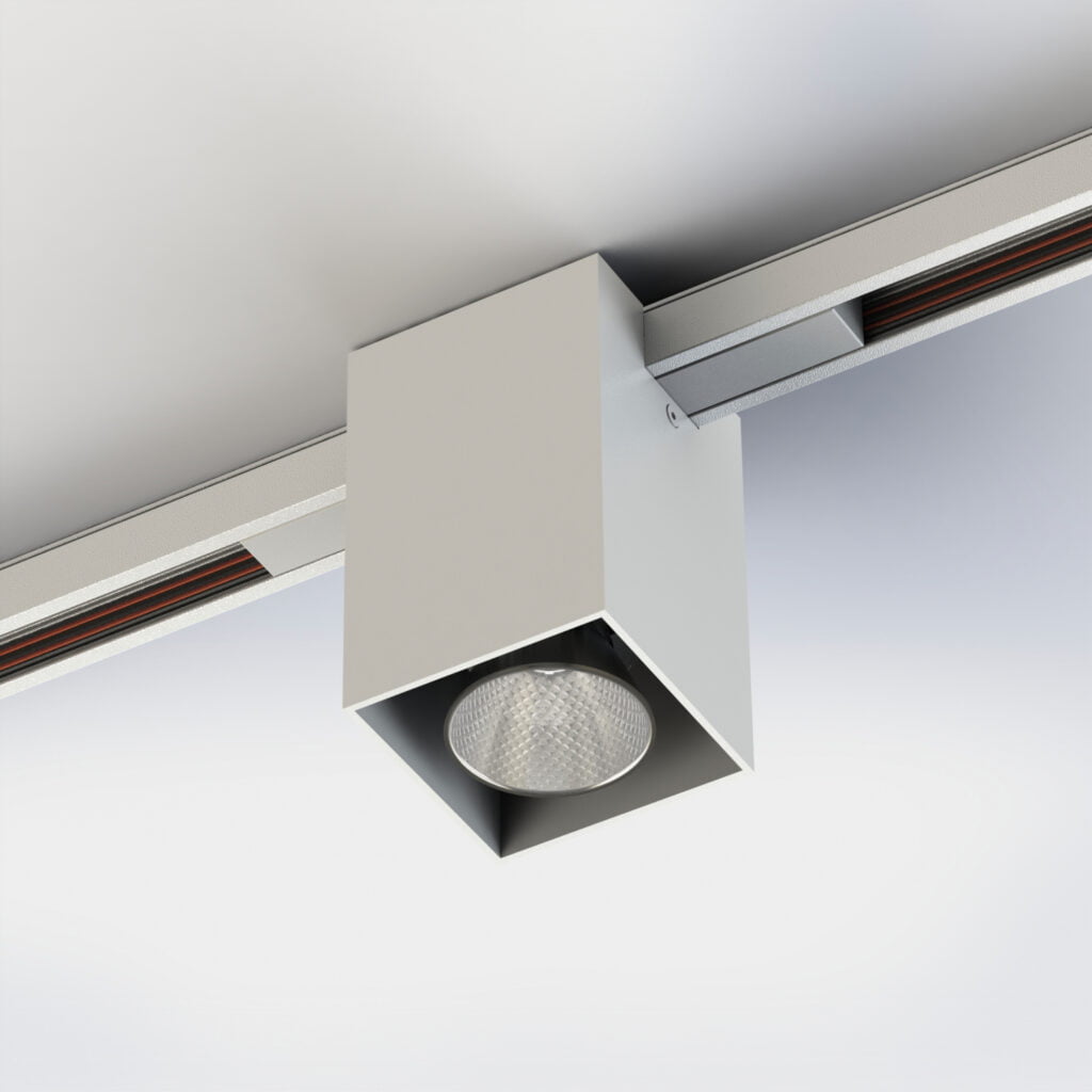 Collezione di apparecchi per un’illuminazione a binario 24V/48V. Apparecchi a luce diretta. Disponibili in versione da binario a soffitto o in versione per bianario da incasso per un’installazione filo muro. Corpo a sezione quadrata in estruso di alluminio in finitura verniciata. Grado di protezione IP20.
