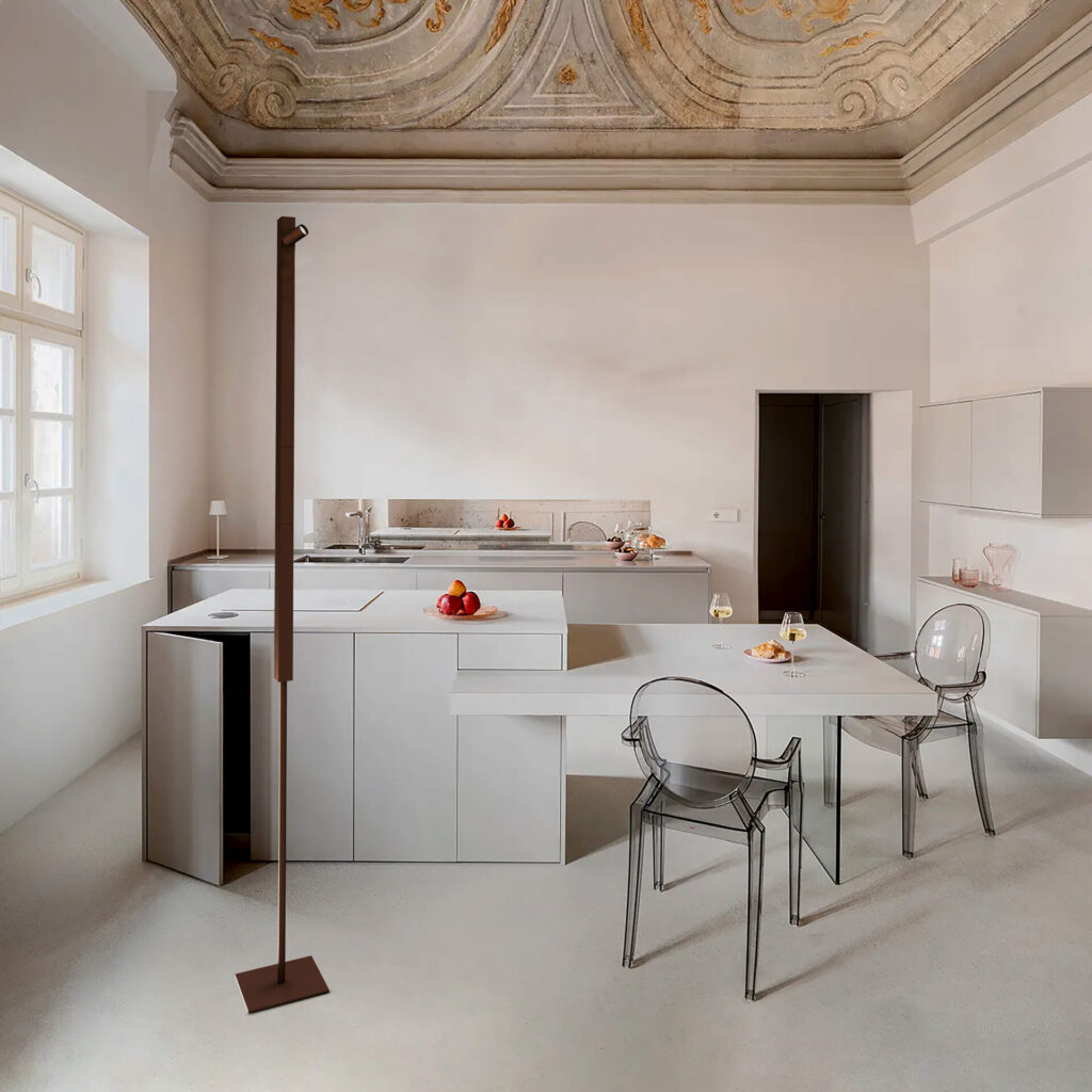 Ibrida è una collezione composta di prodotti da interno, da parete o da terra, composti di un profilo di alluminio illuminato a luce diretta o indiretta e da proiettori della famiglia Focus di Ø 36mm per una luce diretta e puntuale. Ibrida è disponibile anche come sistema componibile per una massima personalizzazione. Disponibili di colore bianco, nero e bronzo o in finiture premium. Classe di protezione IP20