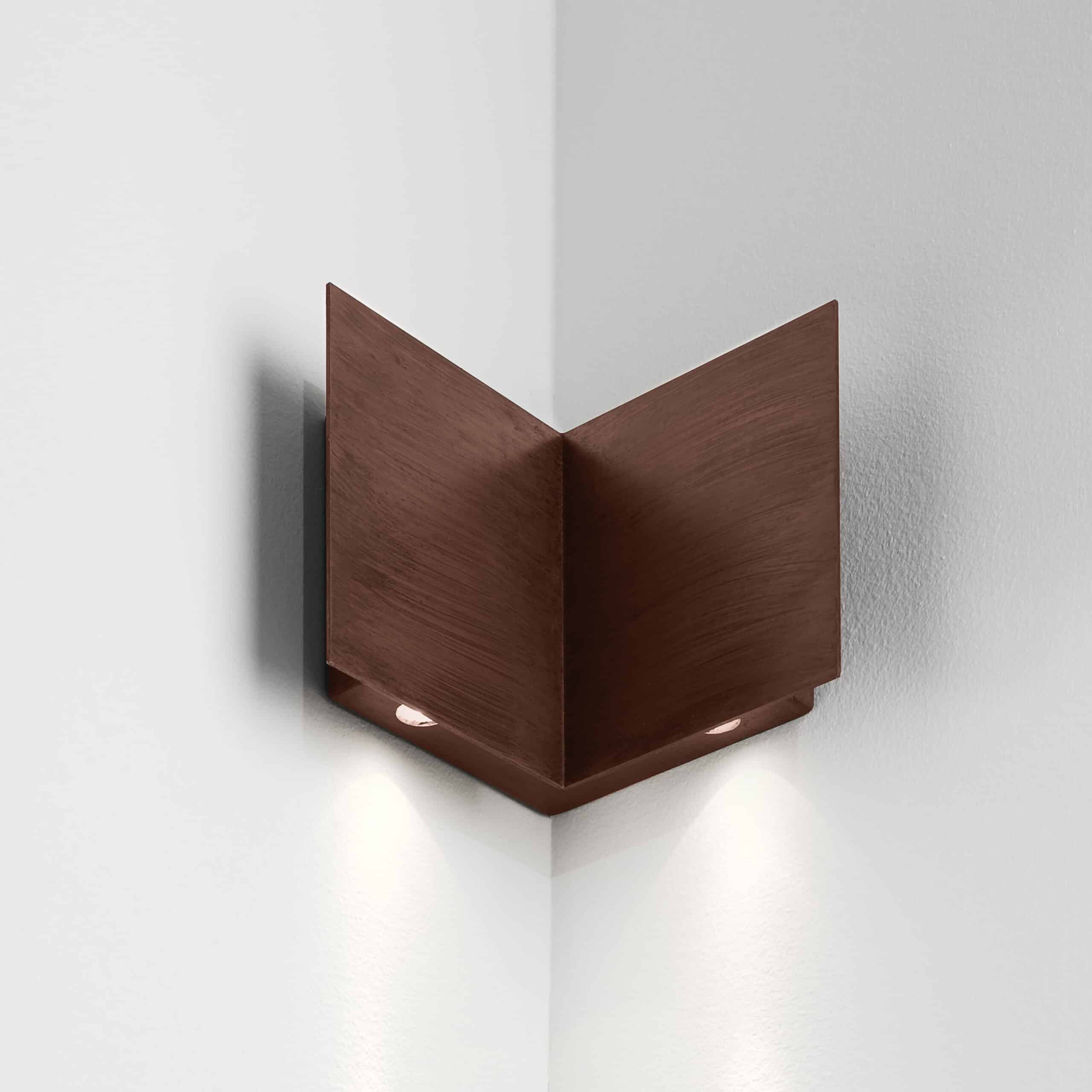 Apparecchio per angolo esterno, mono-emissione per illuminazione d'accento. Gruppo ottico completo di sorgenti LED professionali, completi di alimentatore. Versione ad angolo interno 90° con corpo in metallo finitura verniciata. Grado di protezione IP54.