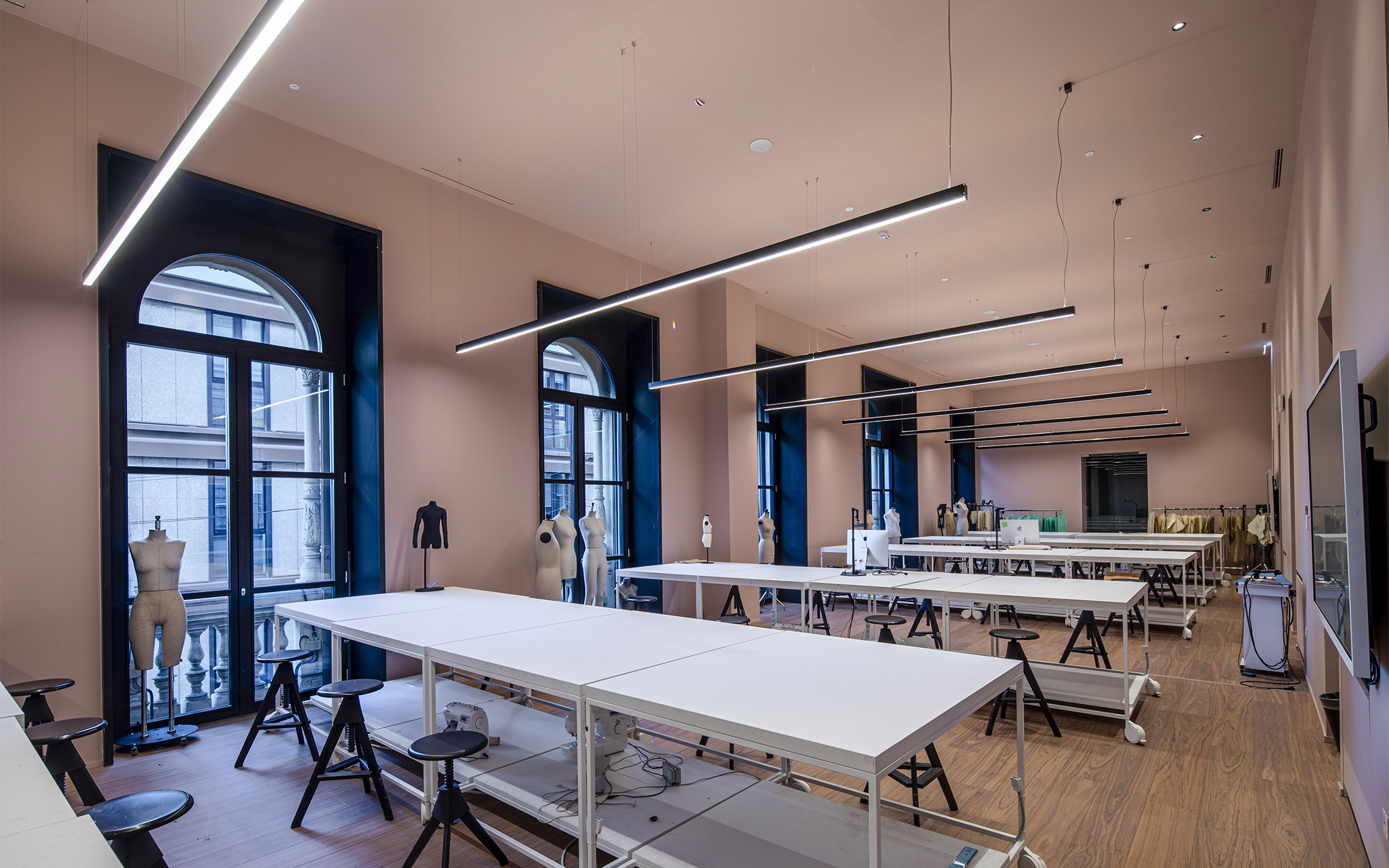 Il restyling ha dato vita a oltre 2.000 metri quadrati di laboratori, aule di disegno e aree espositive. La sfida per Lucifero’s è stata duplice: rispettare l’anima di un palazzo storico e, contemporaneamente, fornire una luce tecnica di altissimo livello, indispensabile per gli studenti che operano nel mondo del Visual, dell'Interior e del Product Design.