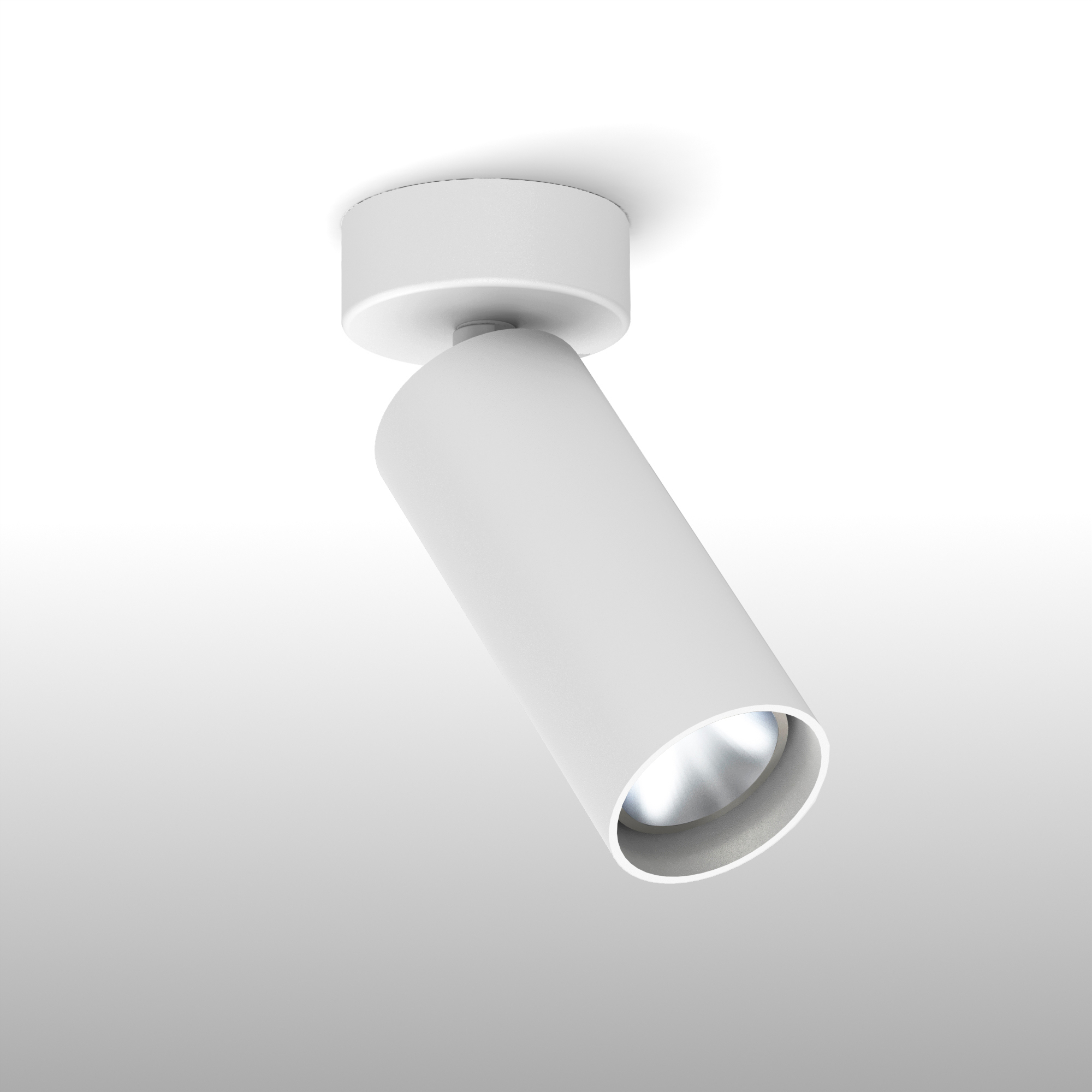 Proiettore da parete a sezione circolare, indoor, realizzato in estruso di alluminio, orientabile sia sull'asse orizzontale che sull'asse verticale, gruppo ottico arretrato per comfort visivo, led cob integrato di potenza 12 o 18 W, ad alta resa cromatica cri 94. Driver integrato, basetta per fissaggio a parete, finitura verniciato a polveri epossidiche, grado di protezione IP20.
