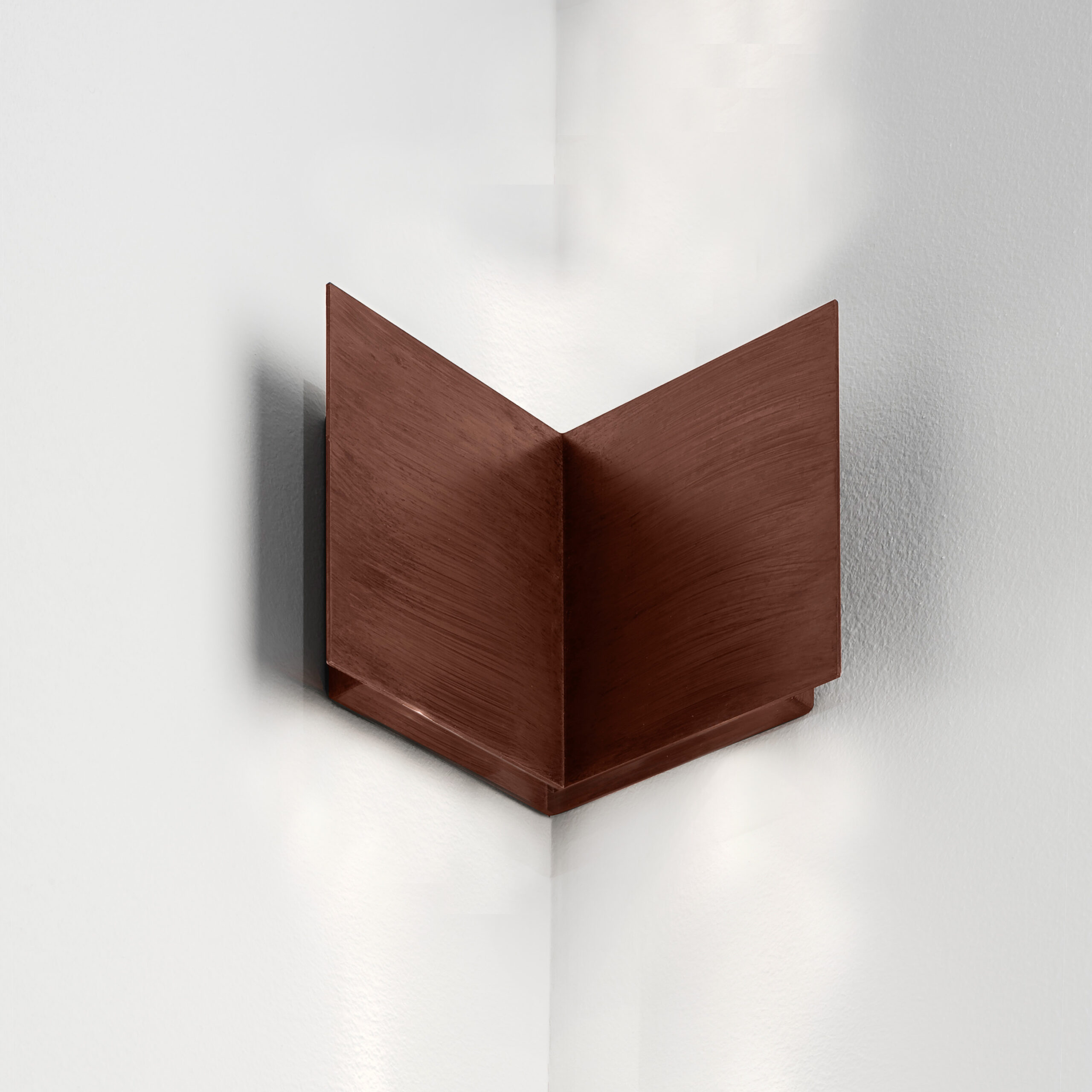 Apparecchio per angolo interno, bi-emissione per illuminazione diffusa. Gruppo ottico completo di sorgenti LED professionali, completi di alimentatore. Versione ad angolo interno 90° con corpo in metallo finitura verniciata. Grado di protezione IP54.