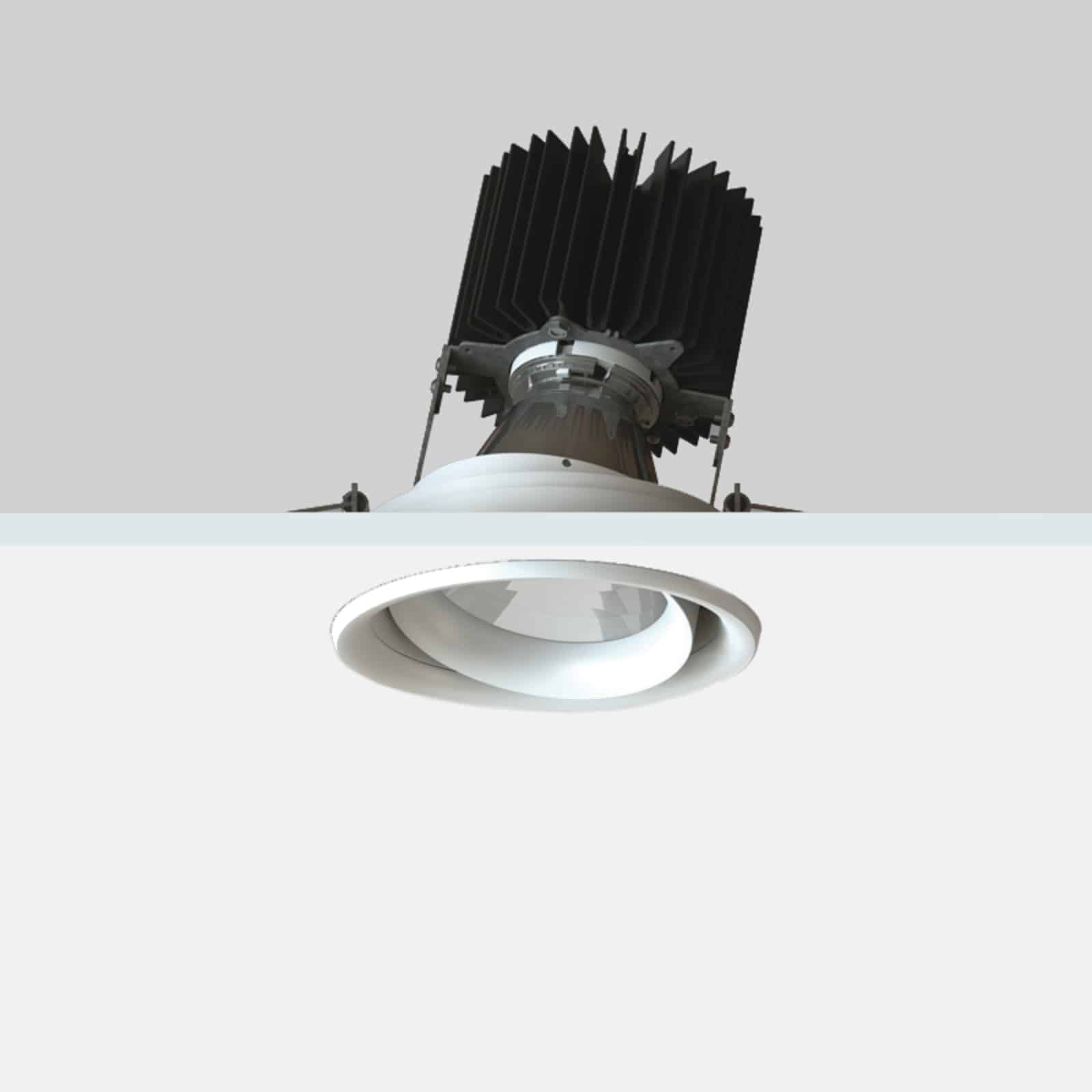 Apparecchio da incasso indoor e outdoor per cartongesso con cornice, tonda, con ottica orientabile per illuminazione d’accento. Sorgente luminosa in posizione arretrata antiabbagliamento. Gruppo ottico orientabile di 355° sull’asse verticale e di +/- 20° su quello orizzontale. Disponibile accessorio per installazione a laterizio. Sorgente LED integrata con riflettore metallizzato in alluminio puro 99,9%. Corpo e gruppo ottico in alluminio verniciato.… leggi tutto